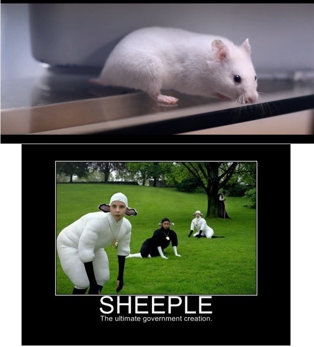 참고로, 일루미나티는 대중들을 쉬플(sheeple = sheep + people, 양처럼 만만한 놈들)로 여기고 있으며, 실험용 쥐는 실험을 당한 후 죽게 됩니다.