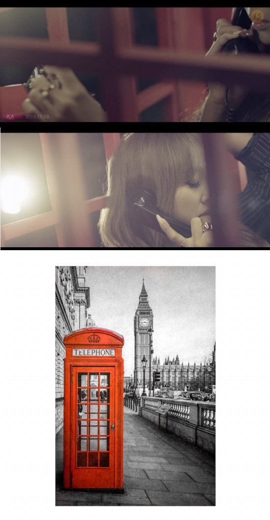 효린이 빨간색 전화 부스 안에서 주영에게 전화를 거는 장면이 나옵니다.