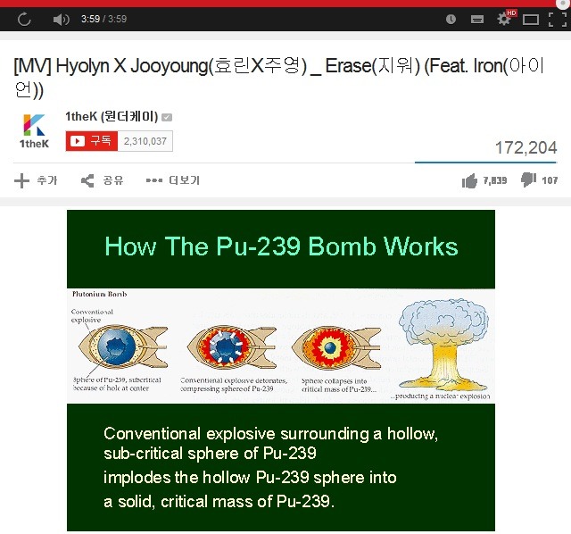 뮤비의 상영시간은 3분 59초 즉, 239초입니다.