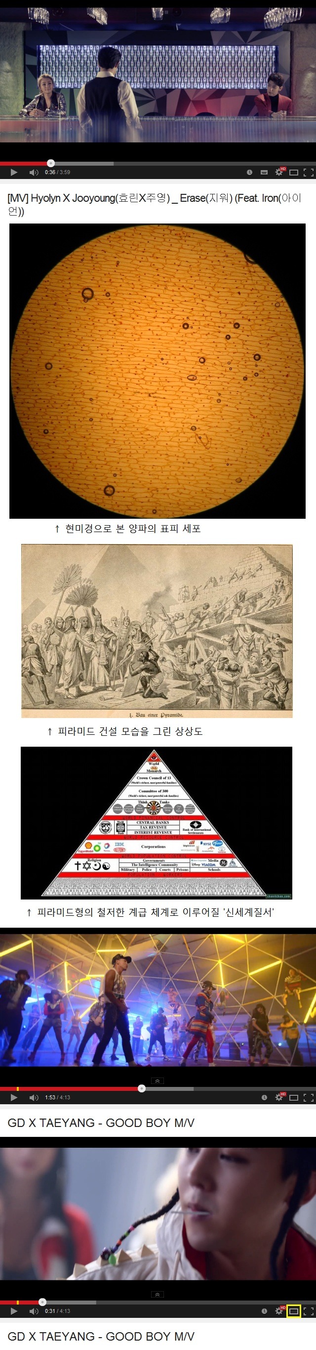 참고로, '굿보이' 뮤비에서도 지드래곤과 태양이 안무를 펼치는 배경의 조명이 피라미드를 연상시키며, 견장에 피라미드의 모양을 그대로 본뜬 모형이 붙어 있는 장면도 나옵니다.