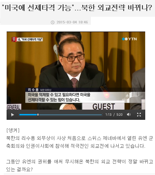 작성자달빛가득 작성시간 15.03.15 북한 외교관들이 유엔에서 연설할 때 영어로 하는 것이 아니라