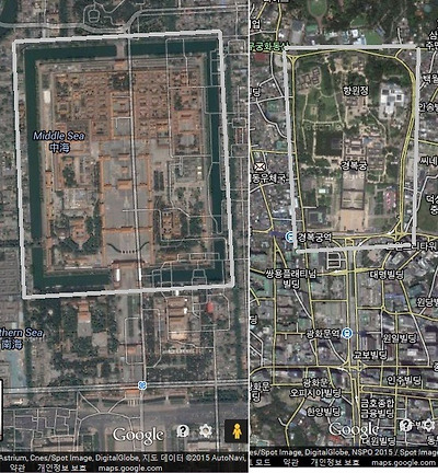일단 아래, 구글 지도에서 가져온 위성사진으로 '자금성'과 '경복궁'의 크기를 가늠해보자.