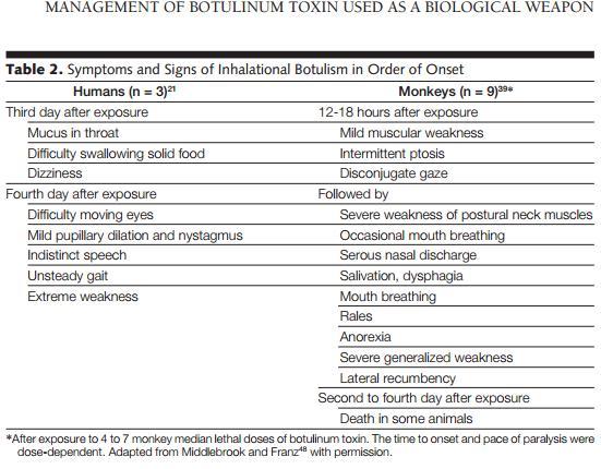 after exposure. Effective response to a deliberate release of botulinum toxin will depend