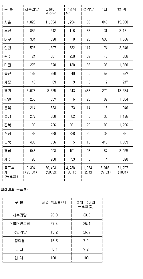 재외유권자 투표에선 더민주당이 전국적으로 우세로..