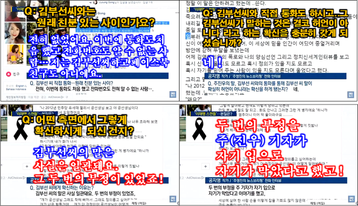 그랬는데, 김부선씨 하나를 이렇게 바보로 만들면서 이렇게 하는 게 무슨 의미가 있지? 라는 생각이 들었고, 제가 그래서 주기자만 알 수 있는 다른 포스팅을 몇 번 페이스북에 올렸어요. 왜냐하면, 주기자가 소리 없이 늘 제 페이스북을 보고 가끔 전화해서 “누나, 요새 이랬구나!” 이렇게 말할 때가 가끔 있었거든요.