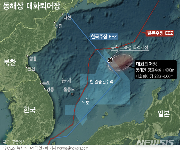 【서울=뉴시스】김예진 기자 = 일본 언론에서 북한이 동해상 대화퇴(大和堆·일본명 야마토타이)어장의 영해권을 일본에게 주장하고 나섰다는 보도가 나왔다.
