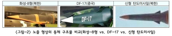 [서울=뉴시스]노즐 형상의 동체 구조물 비교(화성-8형 vs. DF-17 vs. 신형 탄도미사일). 2022.02.10. (자료=신승기 한국국방연구원 연구위원 제공) *재판매 및 DB 금지