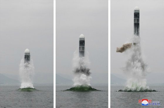 북한이 지난 2019년 10월 2일 발사한 신형 잠수함발사탄도미사일(SLBM) '북극성-3형'. 연합뉴스
