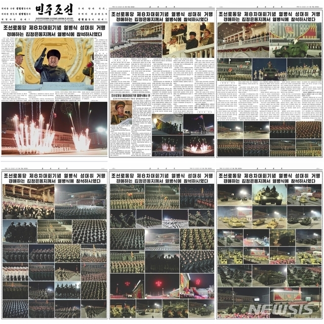 [서울=뉴시스]북한 민주조선과 노동신문은 김정은 국무위원장이 지난 14일 평양 김일성광장에서 열린 조선노동당 제8차 대회 기념 열병식에 참석했다고 15일 보도했다. (사진=조선중앙TV 캡쳐) 2021.01.15. photo@newsis.com