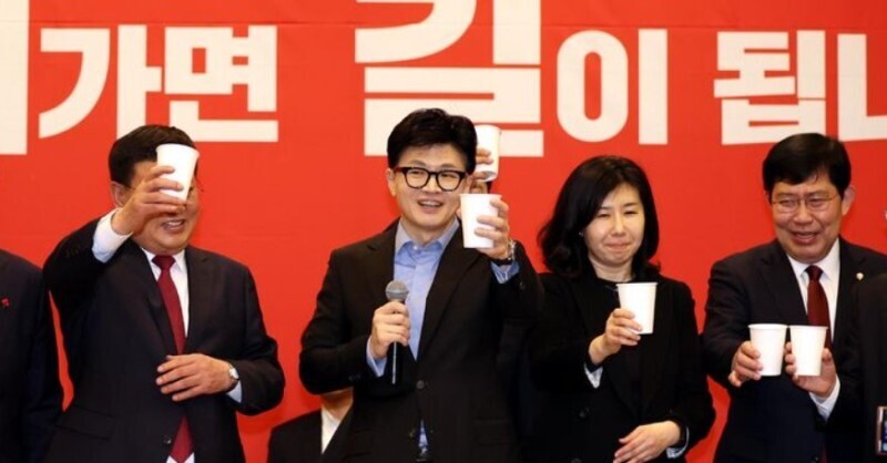건배하는 한동훈, 지지자들은 환호.. "대구는 내 정치적 고향" 이것들이 정녕..사람들인가?