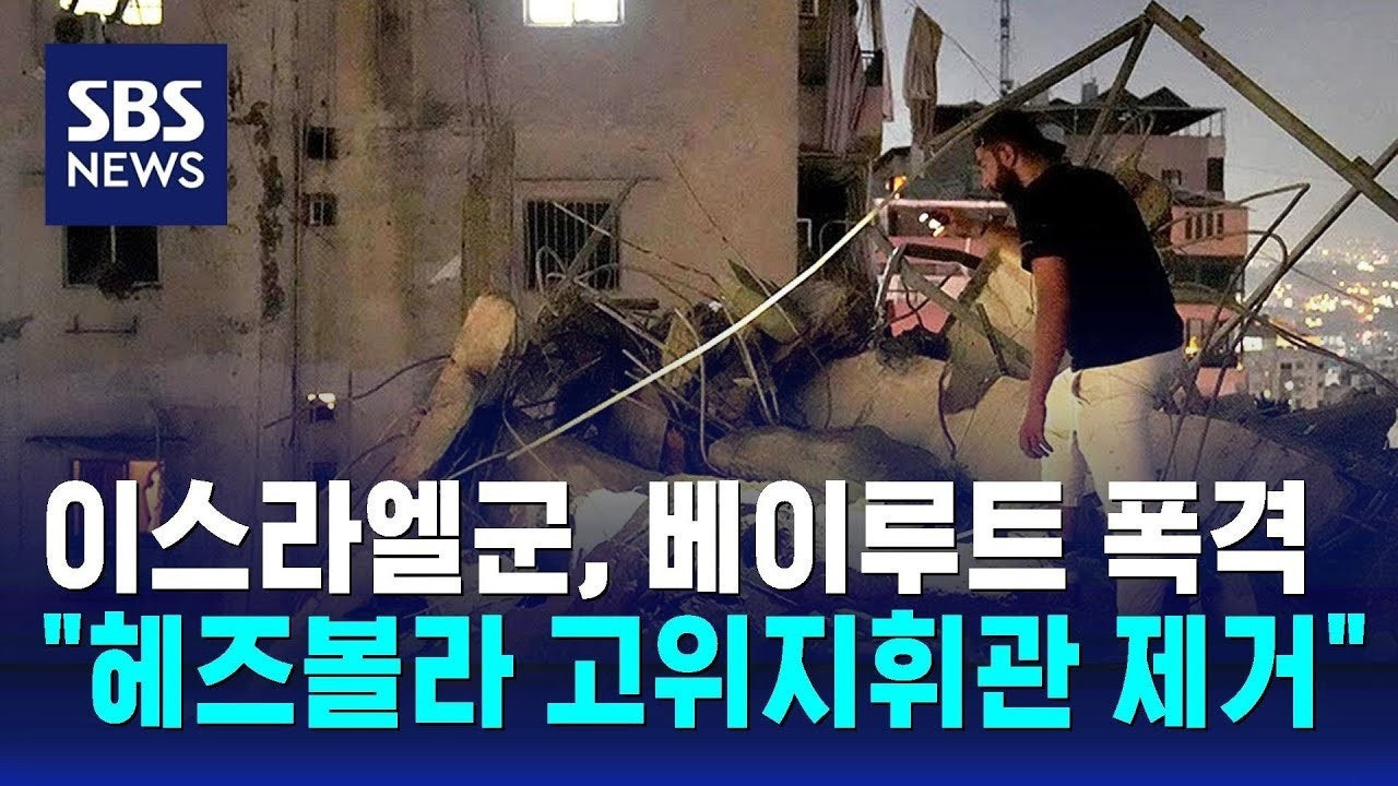 | 이스라엘군 "헤즈볼라 고위지휘관 제거"…전면전 번지나 / SBS〈앵커〉이스라엘군이 레바논의 수도 베이루트에 폭격을 가해 헤즈볼라 고위지휘관을 제거했다고 밝혔습니다. 헤즈볼라의 폭격으로 어린이 12명이 숨진 지 사흘 만의 보복 공격인데요. 전면전 위기가 커지고 있습니다.표언구 기자입니다.〈기자〉주거용 건물 한쪽이 심하게 파손됐습니다.주변은 아수... www.youtube.com |