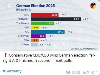 유럽 국가들이 미국과 러시아의 협상에 부정적인 태도를 보이고 우크라이나 전쟁을 계속하겠다는 전의를 불태우는 것은 미국의 협상력을 강화하기 위한 일종의 쇼에 불과하다고 하겠다. 그렇게 보면 유럽의 현정치세력, 특히 사민당 계열은 충실한 미국의 꼭두각시일 가능성이 높다고 하겠다. 미국은 여전히 마크롱과 숄츠 그리고 우르줄라 같은 인물이 필요한 것이다. 그들은 친미의 선봉장이기 때문이다. 유럽은 한국보다 훨씬 더 강력하게 미국에 장악되어 있는 것이 아닌가 하는 생각도 해보게 된다.