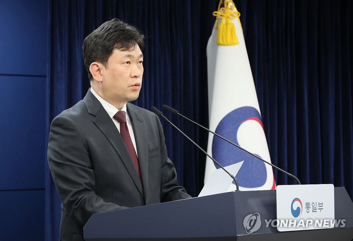 (서울=연합뉴스) 이정훈 기자 = 윤민호 통일부 대변인이 13일 서울 종로구 정부서울청사에서 열린 정례브리핑에서 김여정 북한 노동당 부부장 담화에 대한 통일부 입장을 발표하고 있다. 2026.2.13 uwg806@yna.co.kr