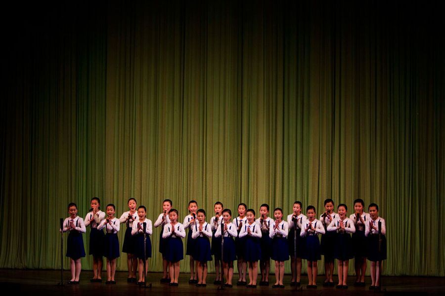 4월 14일 평양의 한 공연장에서 아이들의 합창이 공연되고 있다.