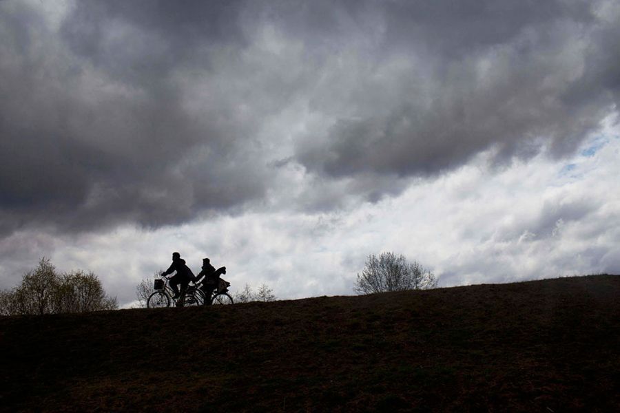 4월 18일 평양, 두사람이 업무가 끝난 후 자전거를 타고 퇴근하고 있는 중이다.