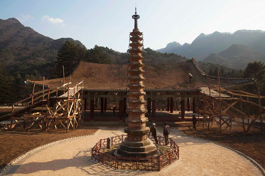 4월 19일 묘향산의 보현사, 현재 중건중이다.