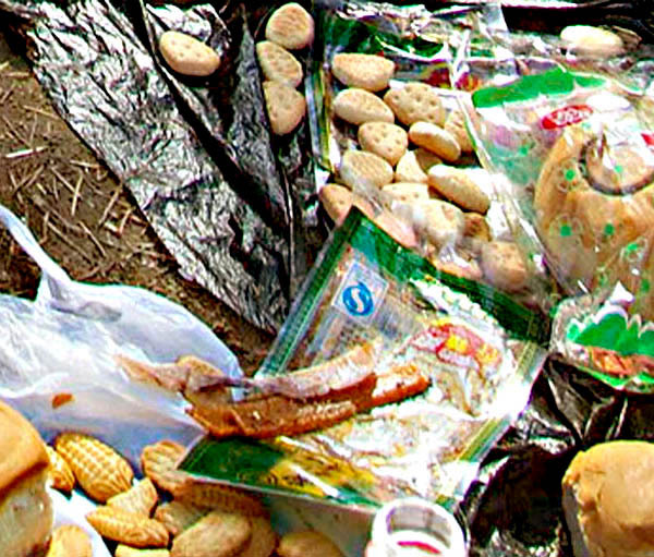 배급제 사회에서 온갖 과자 종류들과 음료수, 심지어 고기 까지 야유회에 가져오다니....