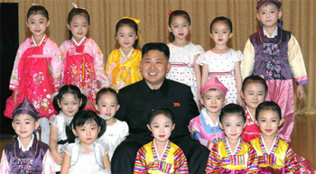 유치원에 간 김정은 5월 30일 평양 중구역 창전거리에 건설된 경상유치원을 방문한 김정은이 축하공연을 한 어린이들과 기념사진을 찍고 있다. 김일성, 김정일 시대에는 그들과 함께 기념사진을 찍은 사람들은 어린이를 포함해 모두 ‘접견자’로 간주해 상대적으로 혜택을 주고 웬만한 죄를 범해도 경감해준 것으로 알려졌다. 평양=조선중앙통신 연합뉴스