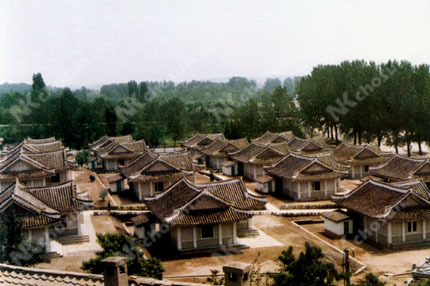황해북도 서흥군 범안리에 있는 문화주택 100여동과 문화후생시설 30여동의 외경.