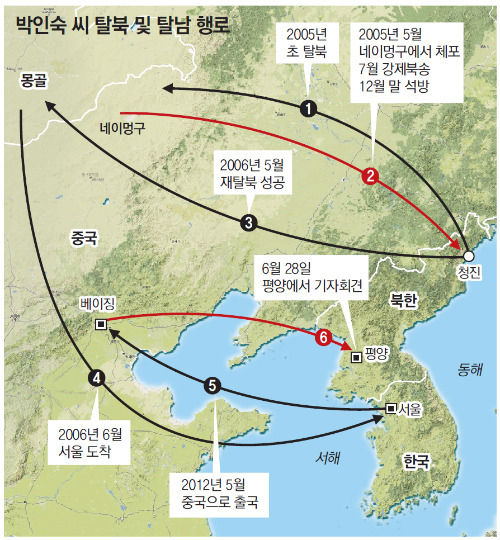 ※위의 기사가 나간 뒤 박 씨를 잘 알고 있는 도희윤 피랍탈북인권연대 대표는 “박 씨의 이복형제들은 박 씨의 탈북자금 1000만 원을 지불했고, 한국에 온 뒤에도 일련의 도움을 준 것으로 안다”고 알려왔습니다. 도 대표는 또 박 씨의 귀환사건은 보위부가 뒤에서 조종한 계획적 음모라고 주장했습니다.