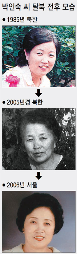 박인숙 씨의 얼굴 사진을 보면 남북한 생활수준의 차이가 그대로 드러난다. 1985년 북한에서 찍은 박 씨의 모습(위부터). 2005년경 탈북 직전 찍은 사진은 고생을 많이 한 듯 늙어 보인다. 하지만 2006년 서울에 온 뒤 박 씨의 얼굴에는 윤기가 흐른다