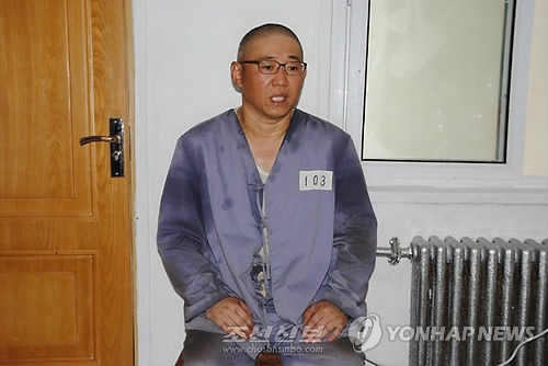 (서울=연합뉴스) 북한의'특별교화소'(교도소)에 수감 중인 한국계 미국인 케네스 배(한국명 배준호)씨가 재일본 조선인총연합회 기관지 조선신보와 인터뷰 하고있는 모습.2013. 7. 3 <<조선신보>>