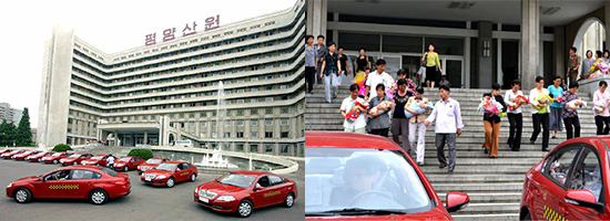 북한이 대동강구역 문수거리에 위치한 평양산원에서 퇴원하는 산모들을 위한 전용 승용차 서비스를 시작했다고 노동신문이 3일 소개했다. 이는 김정은의 산모들에 대한 배려를 선전하기 위한 것으로 탈북자들은 김정일 시대 선물정치의 일환으로 해석했다.