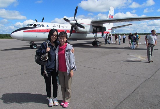 ▲ 삼지연공항 여객기(AN-24) 앞에서 안내원인 이설향씨와 함께. 순안공항의 또 다른 AN-24기 1대는 북한 내국인의 국내선 관광용으로 준비돼 있었다. ⓒ 신은미