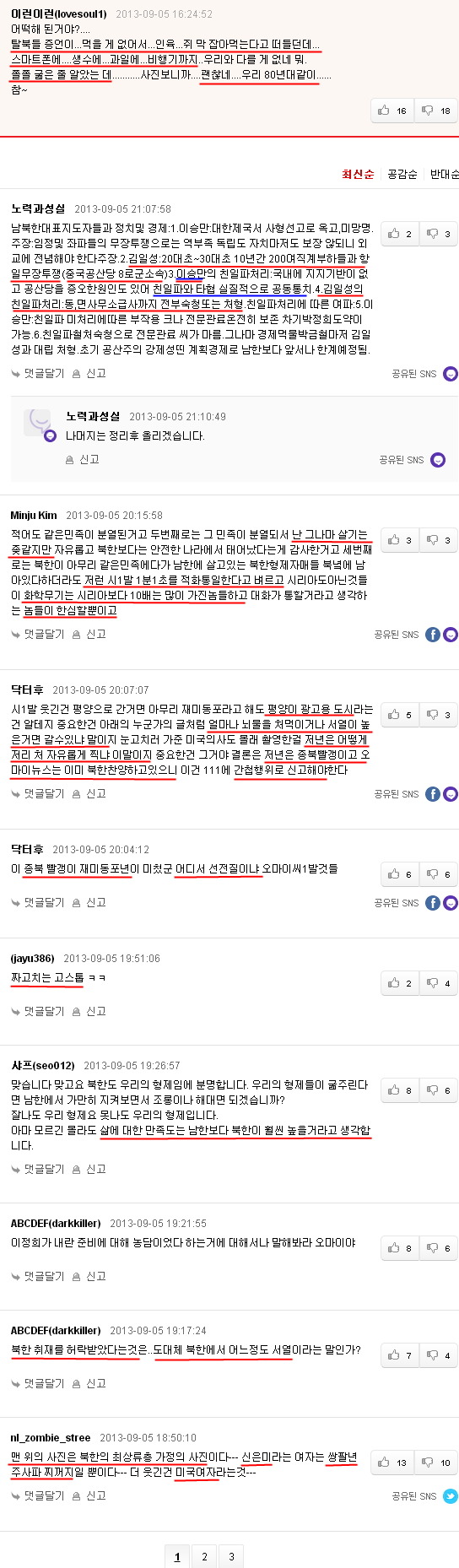 저 위 어느 댓글러는 자신이 남한에서 사는 것이 x같음에도 불구하고