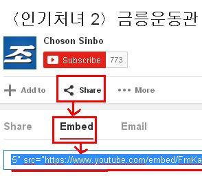 그것을 클릭하면....."Embed"(=동영상 끼워넣기) 라는 부분이 나오죠.