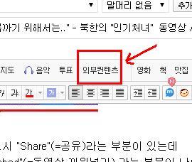위 "외부컨텐츠" 부분을 클릭하면 아래와 같이 됩니다.