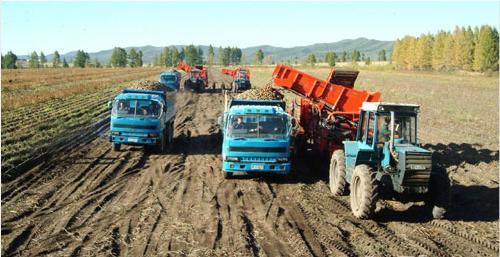 양강도 협동농장에서 감자 수확하는 모습(사진=노동신문)