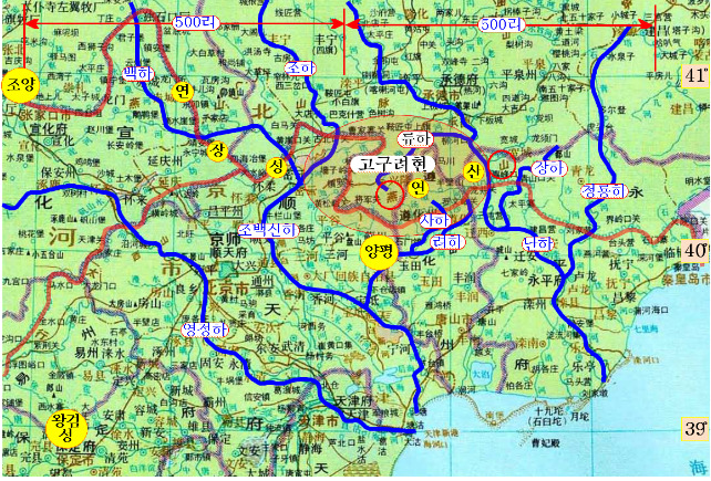 또 『후한서』「군국지」의 기록에 따르면 낙양에서 동북쪽으로 상곡군까지의 거리가 3,200리이고, 낙양에서 동북쪽으로 요동군까지의 거리가 3,600리이다. 그러므로 상곡군 치소에서 요동군 치소인 양평현까지는 대략 400여리의 거리이다. 현 중국 하북성 장가구시 일대에 해당하는 상곡군 치소로부터 동쪽으로 400여리를 가면 현 중국 하북성 천진시 계현 일대가 된다. 위에서 필자가 비정한 요동군 양평현의 위치와 일치한다. 반면 통설에서 요동군 양평현으로 비정하는 현 중국 요령성 요양시 일대는 상곡군 치소로부터 2,000여리나 떨어진 곳이다. 『후한서』「군국지」의 거리기록과 맞지 않는다.