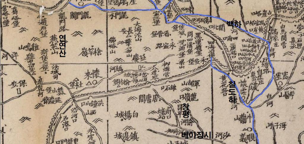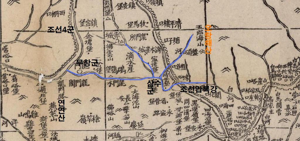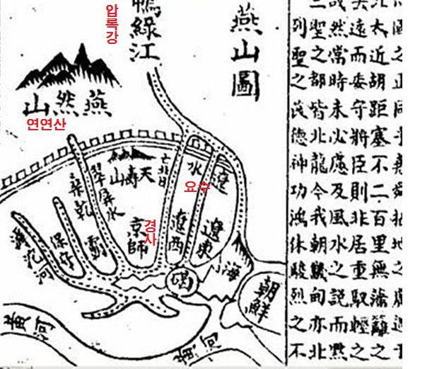 연연산의 위치를 보라 명나라 고지도에서 나타난 조선압록강이 바로 연연산의 북쪽으로 주행하는 지금 백하와 칠도하임을 알수 있다. 모두 베이징시 서북쪽이다. 즉 조선태종때 이미 베이징시 서북쪽 상당한 영토가 조선 평안도관할이었다는 것이다.