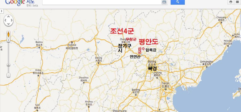 즉 지금 베이징시 북쪽에서 장가구시 일대에 걸쳐 조선군이 주둔하고 있었던 것이다.