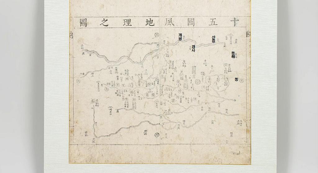 십오국풍지리지도라는 고지도이다. 개평과 경사가 등장한 것으로 보아 명나라때 고지도로 보인다.