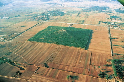 진시왕릉, 저변길이 362m(사각형 뚜렷한 피라밋 윤곽), <높이 76m, 동서 345m, 남북 350m>