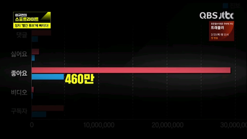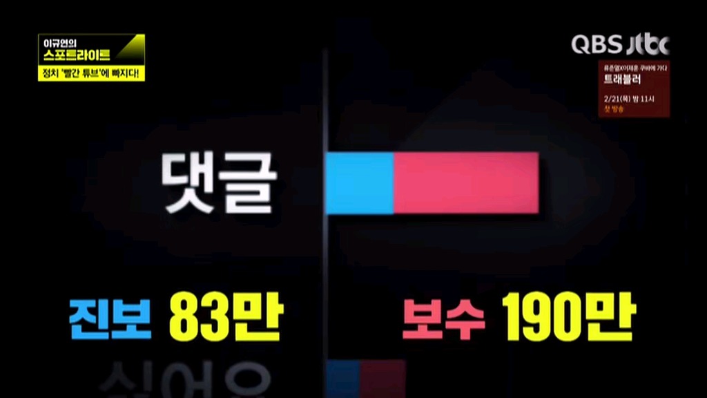유투브 알바 작성자wkdhrdl|작성시간19.03.28|조회수676 목록 댓글 2 글자크기 작게가 글자크기 크게가 토종친북 진보좌익 세력(파란색) 토착왜구 보수우익 세력(빨간색) 다음검색 현재 게시글 추가 기능 열기 북마크 공유하기 신고 센터로 신고 댓글 댓글 2 댓글쓰기 답글쓰기 댓글 리스트 작성자도깨비 | 작성시간 19.03.29 유튜브 동향을 보면 ...문정권 = 좌파 = 페미지원, 동성애 지원 ... 이런 프레임을 만들고 있더군요.그와 관련하여 많은 동영상들이 올라오고 있습니다.문정권 지지율 하락 원인이 ... 저런 정신나간 정책들 영향도 큽니다.그 이외에 다른 많은 정치적 움직임들도 보이고 있네요.우리나라 데이터통신 사용량 절반이 유튜브에 사용되고 있다는 것 ... 명심하세요. 작성자마루향 | 작성시간 19.03.29 감사합니다^^ 댓글 전체보기