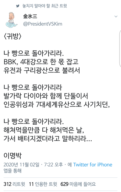 작성자인향만리 작성시간 20.11.03 김빙삼옹 ㅋㅋ