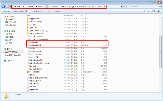 A컴퓨터에서 이용하던 북마크를 B컴퓨터에서도 이용할 수 있습니다.