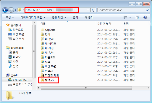 익스플로러 즐겨찾기는 컴퓨터에 저장되는데 위치는