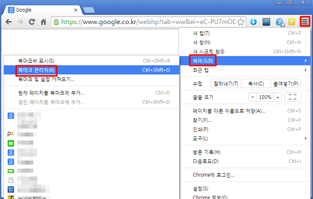 크롬 웹브래지어에서 북마크 (즐겨찾기)를