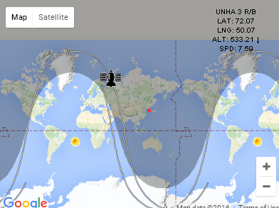 2012년 12월 12일 발사된 광명성3호(은하3호) 현재 궤도 위치
