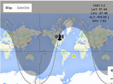 위성체의 고도가 500km가 아니라, 약간 낮아져 있음을 볼 수 있습니다.