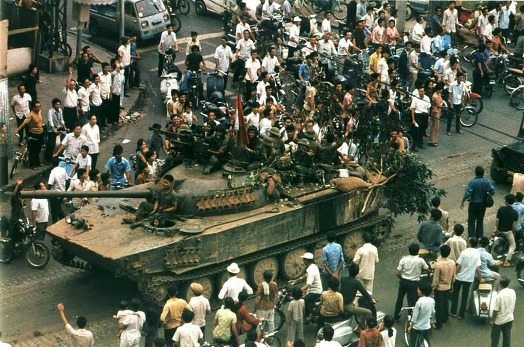 월남 패망의 날 - 사이공으로 진군하는 베트콩과 월맹군은 시민들의 열렬한 환영을 받았습니다.