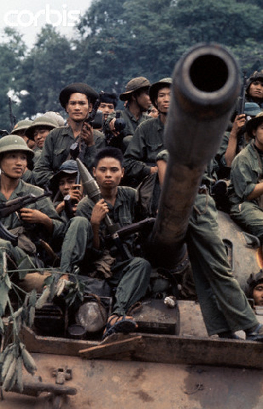 사이공거리로 입성하는 공산군들은 승리의 기쁨에도