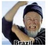 브라질은 한 쪽으로 주먹 쥔 팔을 들고,