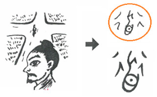 머리/수(首)가 있는 모습의 본떠 만든 글자로서