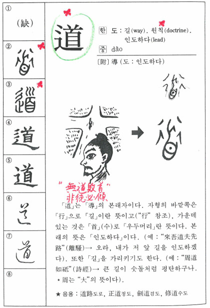 도(道)는 <辶(=辵)+首> 이런 구조로 되어있죠 ?