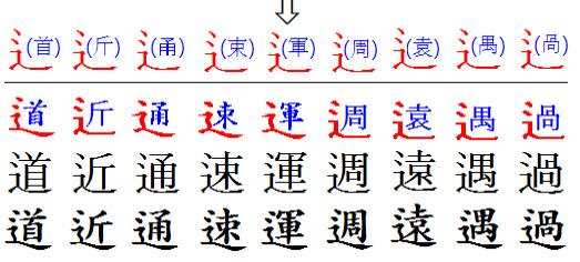 간단하게 <책받침( ? ) 부수>형태로 (辶) 사용합니다.